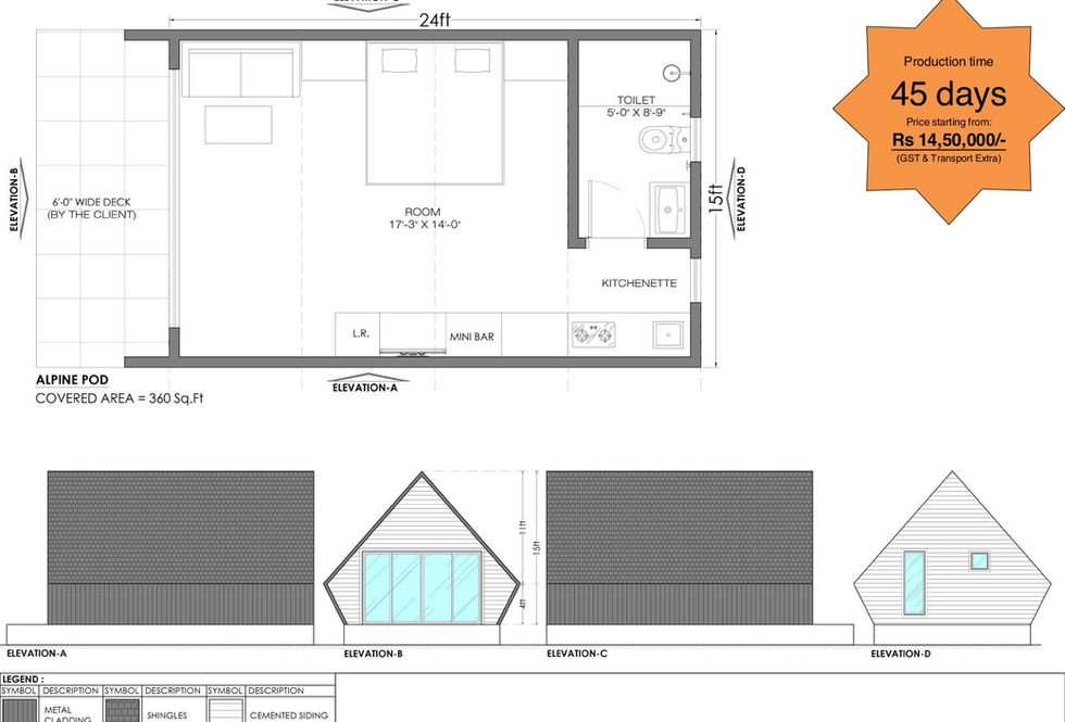 Offered in three spacious layout options ranging from 180 to 360 sq. ft., AlpinePod comes equipped with a cozy sleeping space, well-planned bathroom, mini-bar, and optional kitchenette. Whether it’s a luxurious eco-resort or a serene guest room in the hills, this design delivers style and sustainability with minimal on-site work. The high-quality materials and insulated structure ensure year-round comfort and long-term durability.