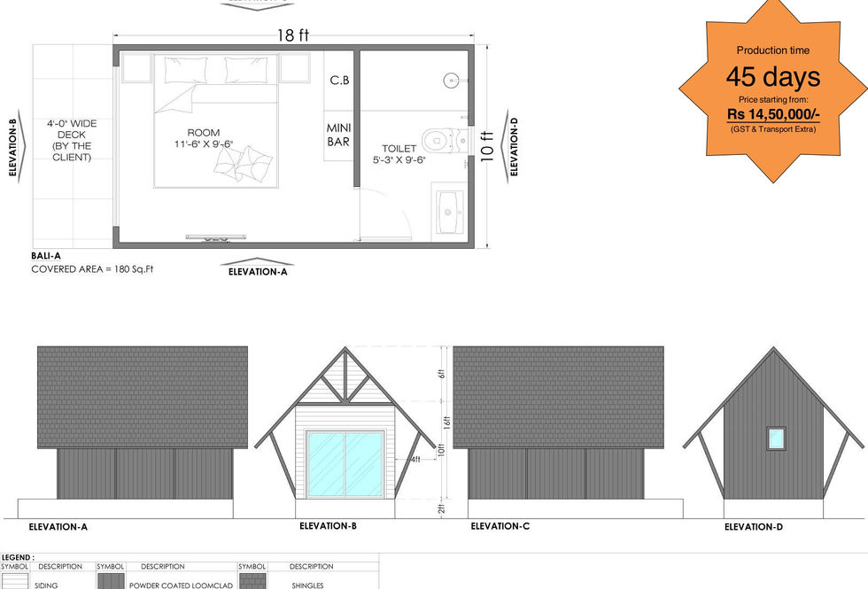 Bali Single Room Prefab Modular Cottage is a compact and contemporary luxury prefab design inspired by tropical resort architecture, offering a calm, organic aesthetic combined with efficient space planning. Designed as a premium single-room modular cottage, it features a comfortable sleeping area, a modern bathroom, and thoughtfully positioned openings that enhance natural light, ventilation, and a relaxed indoor–outdoor living experience within a minimal footprint. Available in three built-up area options of 180 sq ft, 297 sq ft, and 360 sq ft, the Bali is ideal for boutique resorts, tropical retreats, eco-stays, glamping projects, staff accommodations, and scalable rental cottages where fast execution and strong visual appeal are essential. Manufactured in a controlled factory environment using Loom Crafts’ patented light-gauge steel prefab construction technology, the Bali delivers excellent thermal and acoustic insulation, superior weather resistance, and long-term structural durability. Priced from ₹8,50,000 onwards (GST & transport extra) with a production timeline of 45 days, this design offers a cost-effective alternative to traditional construction and is backed by a 20-year structural and rain-leakage warranty, making it a reliable solution for compact prefab hospitality developments.