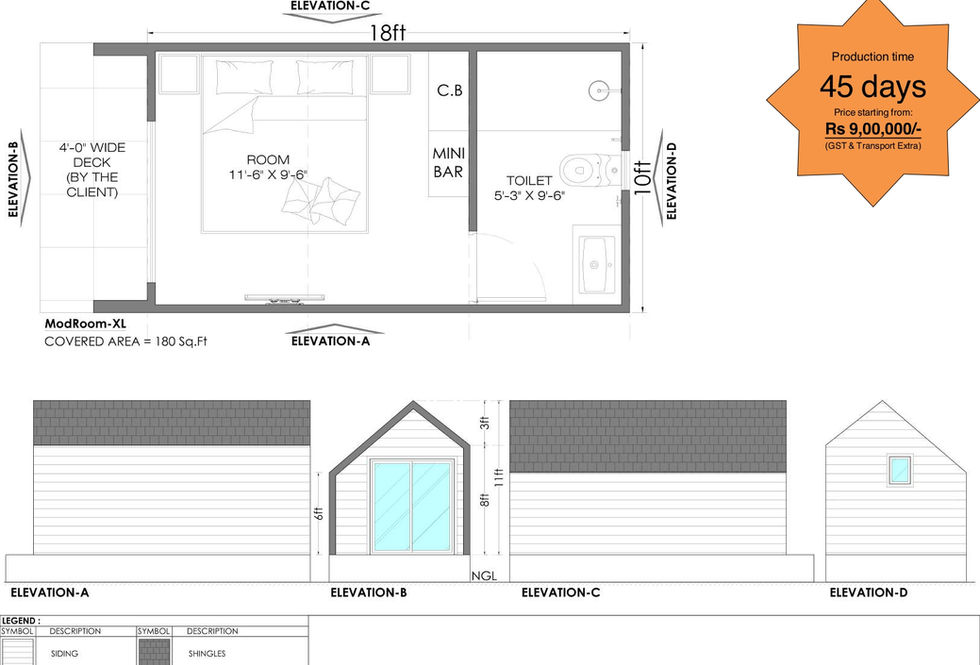 ModRoom XL Single Room Prefab Modular Cottage is a compact and highly efficient luxury prefab design created for smart hospitality and rental-focused developments. Designed as a premium single-room modular cottage, it features a comfortable sleeping area, a modern bathroom, and intelligently planned openings that enhance natural light, ventilation, and overall comfort within a minimal footprint. Available in three built-up area options of 180 sq ft, 297 sq ft, and 360 sq ft, this model is ideal for boutique resorts, glamping projects, staff accommodations, budget-friendly resort rooms, and rental cottages where scalability and fast execution are critical. Manufactured in a controlled factory environment using Loom Crafts’ patented light-gauge steel prefab construction technology, the ModRoom XL delivers excellent thermal and acoustic insulation, superior weather resistance, and long-term structural durability. Priced from ₹9,00,000 onwards (GST & transport extra) with a production timeline of 45 days, this design offers a cost-effective and faster alternative to traditional construction and is backed by a 20-year structural and rain-leakage warranty, making it a reliable solution for compact prefab living and hospitality projects.